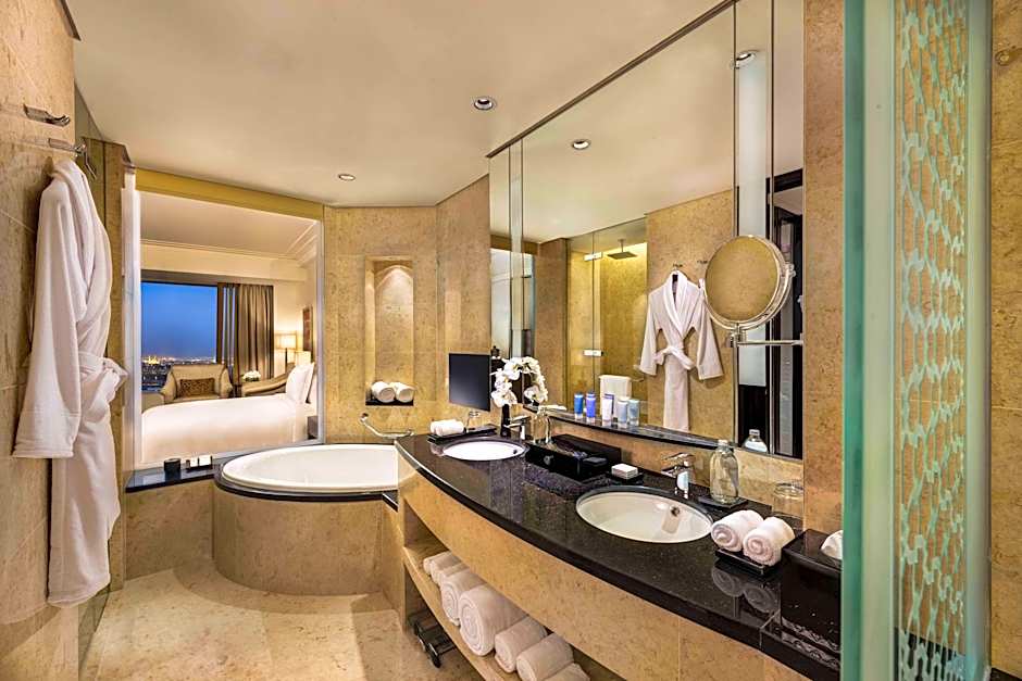 Featuring views of the Arabian Peninsula or the vibrant Sheikh Zayed Road, this luxurious, air-conditioned room offers free WiFi and a separate living area with a satellite flat-screen TV. It offers a Bose® surround sound system, an iPod docking station and a Nespresso® machine. The bathroom is fitted with a shower, bath and free toiletries.